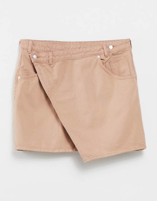 Monki Amalie cotton cross over denim mini skirt in tan
