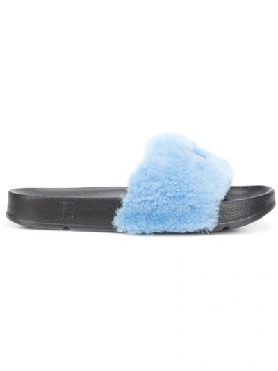 Blue Fila Edition Shearling Drifter Slides In Malibu Blue