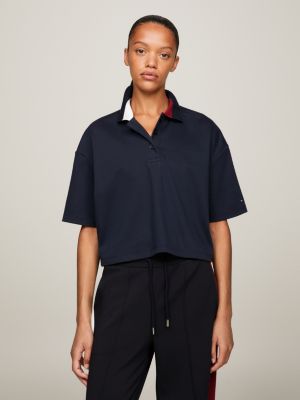 Tommy hilfiger shop crop polo, Global Stripe Cropped Relaxed Polo Blue Tommy Hilfiger shop