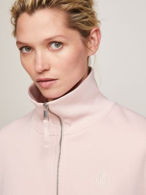 TH Monogram Cropped Half Zip Sweatshirt Pink Tommy Hilfiger