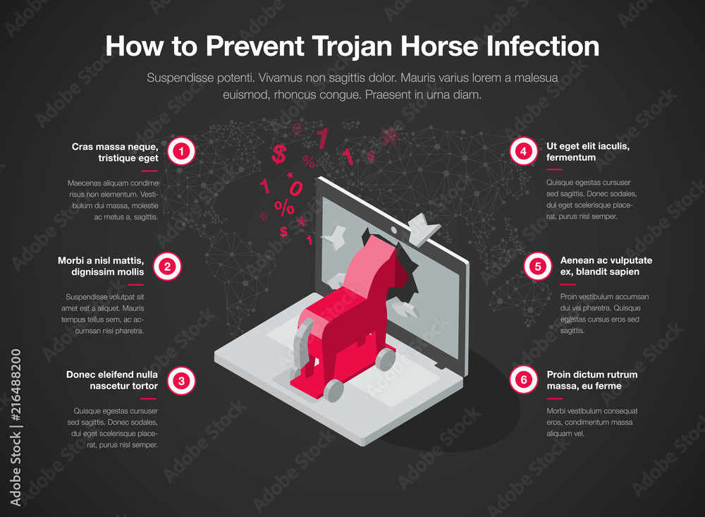 Infographic How Prevent Trojan Horse Infection Stock Vector