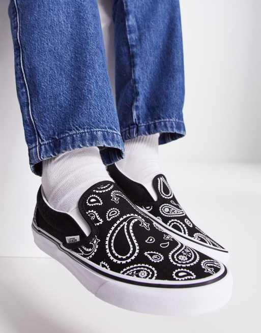 Vans Classic Peace Sneakers nere senza lacci con motivo cachemire