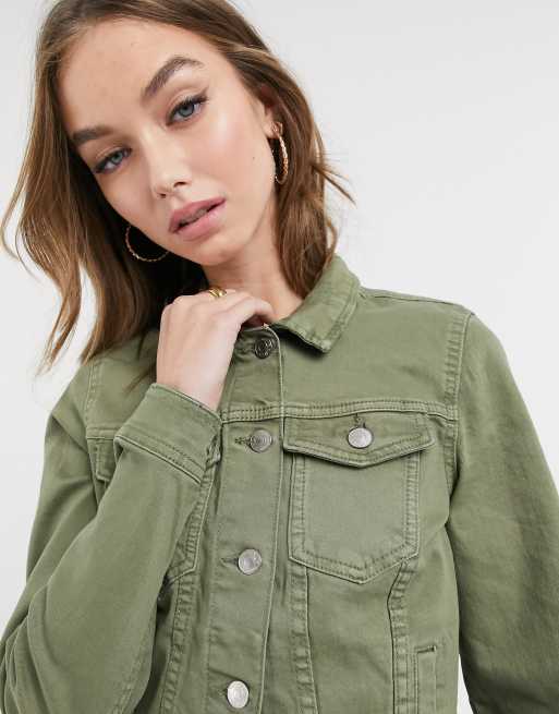 Only Tia classic denim jacket in khaki