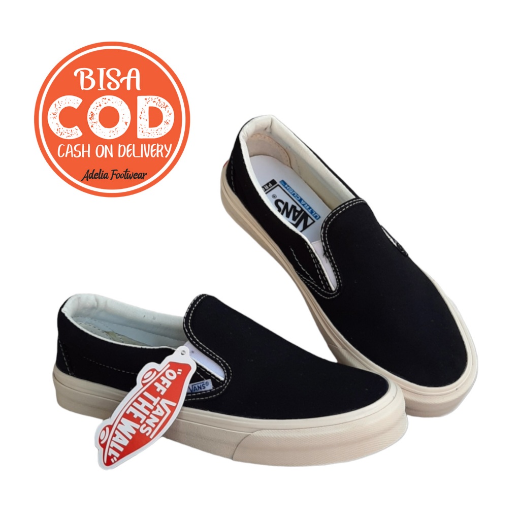 Vans shop flat shoes, Jual Sepatu Vans Slip On Vault OG Black White Premium Sepatu shop