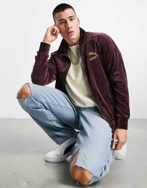 Puma Icon Veste de surv tement effet velours Bordeaux et