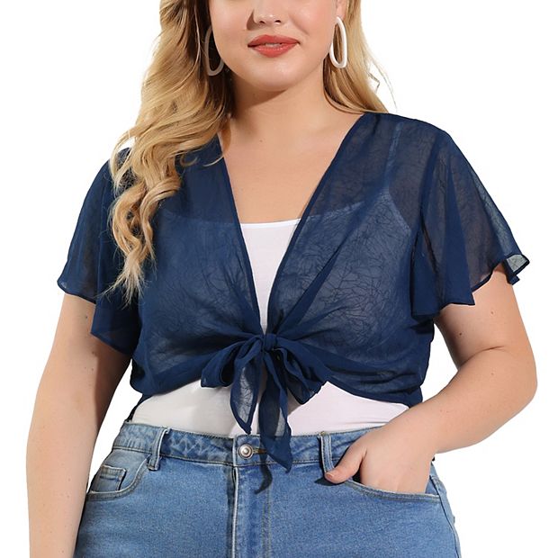 Women s Plus Bolero Shrug Cardigan Flare Short Sleeve Tie Front