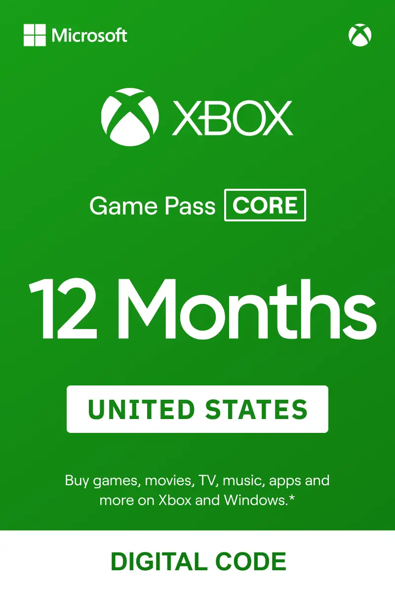 Buy Xbox Game Pass Core 12 Months Xbox Live Digital Code