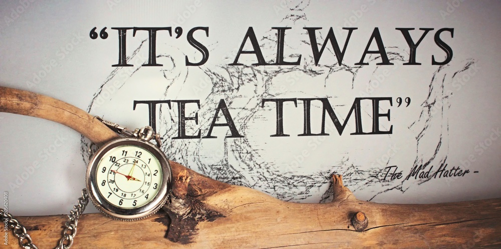 It s always time for tea silver pocket watch with chain on a