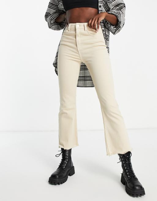 Stradivarius cropped flare jean in beige