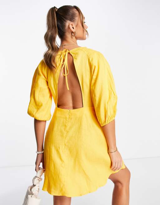 Mango Vestito corto giallo con apertura e allacciatura sul retro