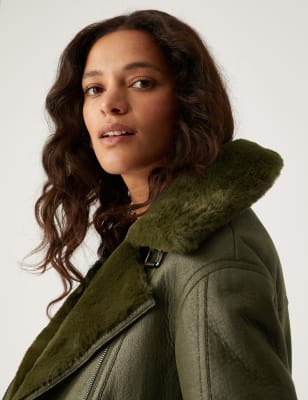 Faux Shearling Borg Lined Aviator Jacket M S Collection M S