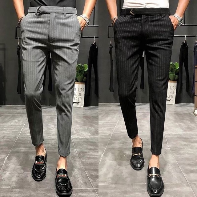 Mens shop ankle slacks, Long Pants Men Ankle Pants Elastic Waistline Pants Korean Slim Fit shop