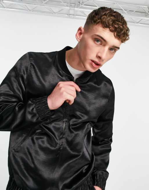ASOS DESIGN co ord smart satin bomber jacket in black