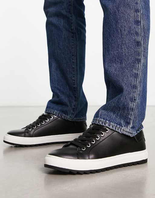 Karl Lagerfeld leather low top sneakers in black on two tone sole BLACK