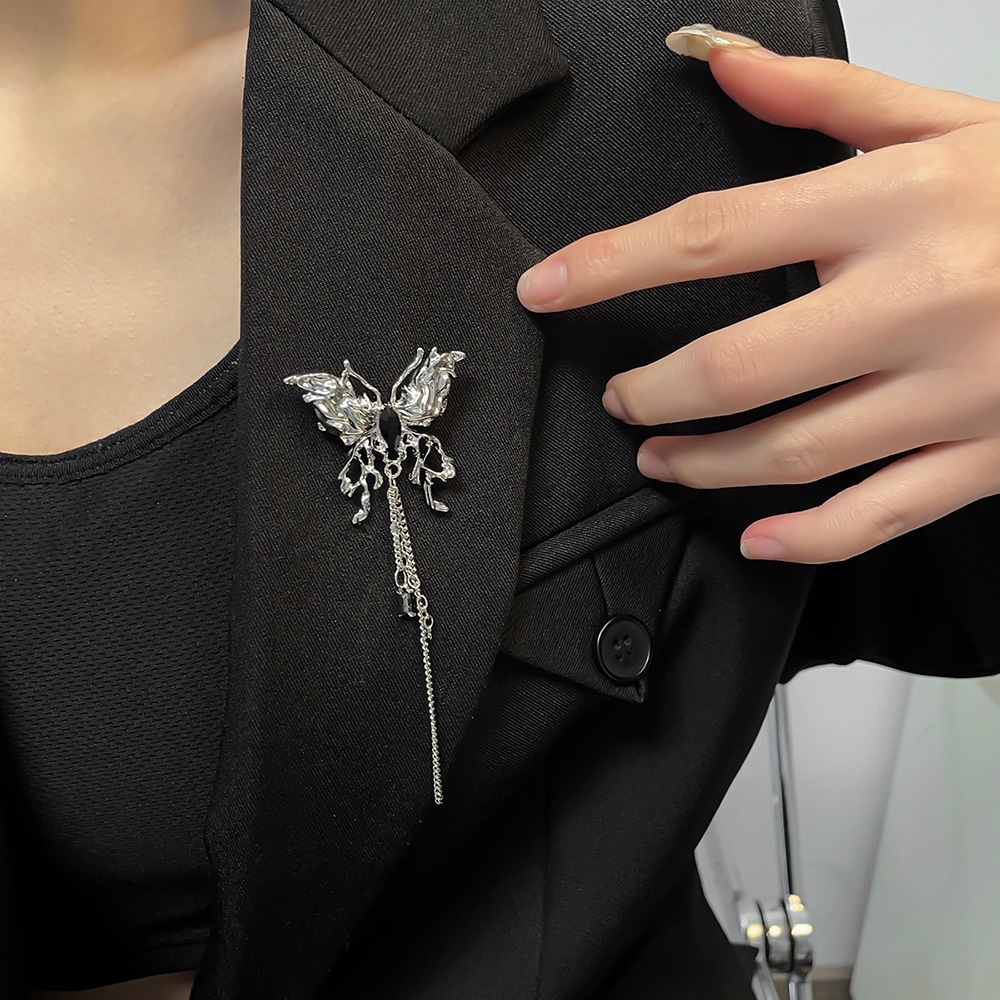 Metal Chain Brooch Tassel Butterfly Pendant Brooch for Women Men