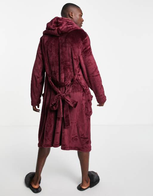 ASOS DESIGN lounge dressing gown in burgundy fleece ASOS