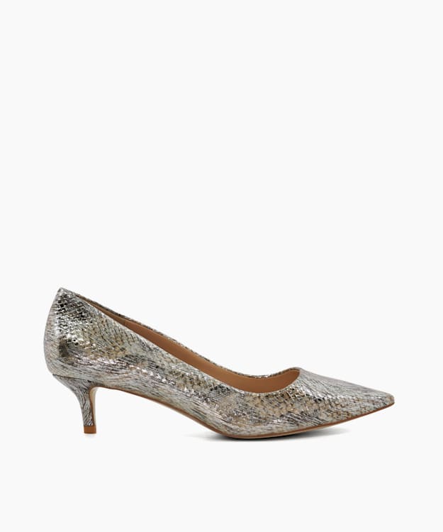 Ladies Girls 10cm Thin Heel Commercial Basic Pump Metallic PU