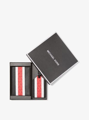 Pebbled Leather and Logo Stripe Passport Wallet and Luggage Tag