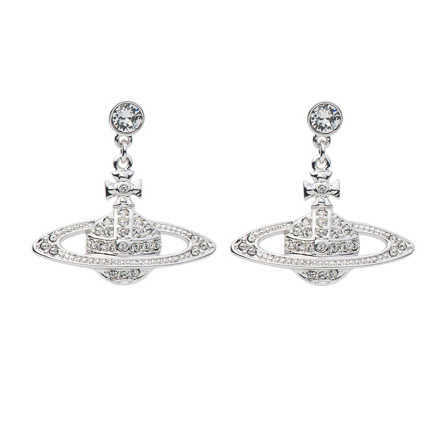 Mini bas relief earrings shop silver, VIVIENNE WESTWOOD Mini Bas Relief tone Drop Earrings Silver shop