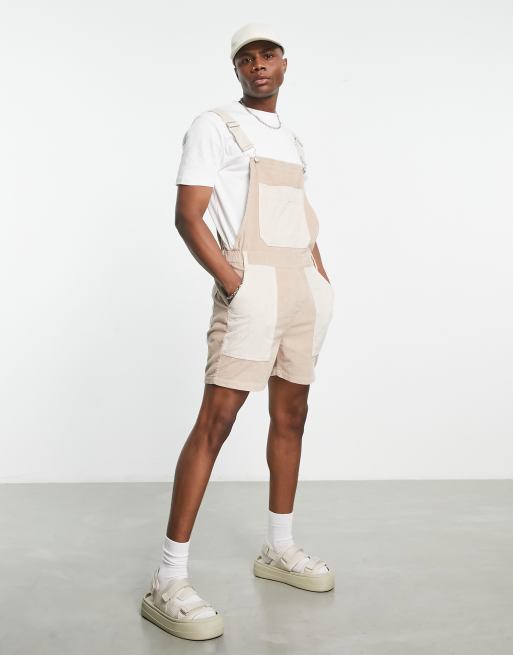 Mens overall shorts forever shop 21, ASOS DESIGN shorts dungarees in neutral colour block cord ASOS shop