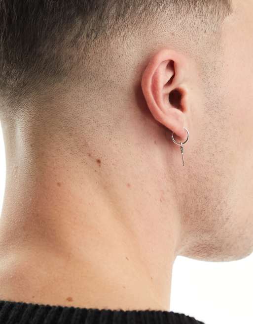 Mens sterling silver hoop shop earrings, Mens Single 2mm Silver Huggie Hoop Earring Hersey Son Silversmiths shop