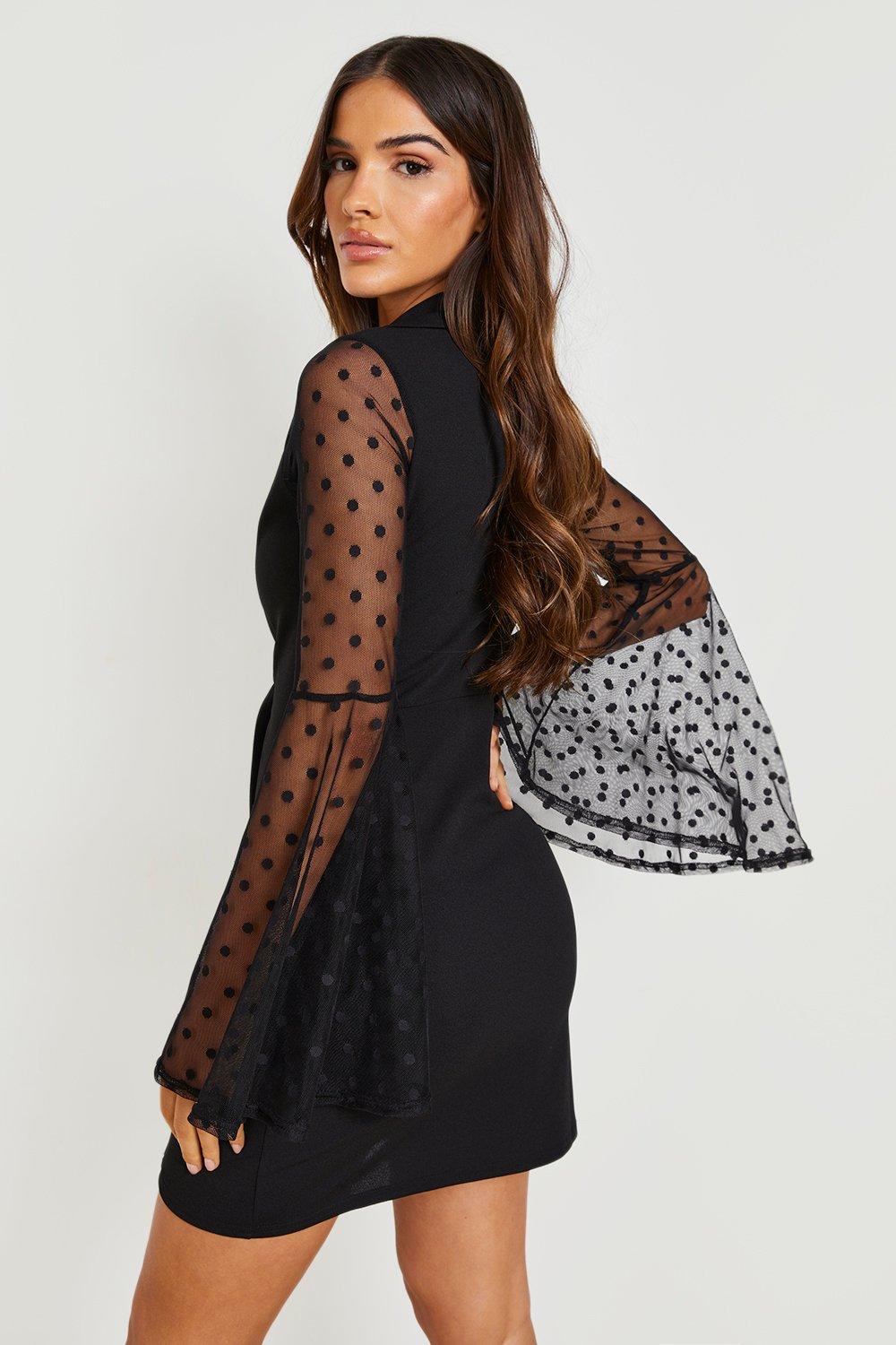 Mesh shop blazer dress, Dobby Mesh Flared Sleeve Blazer Dress shop