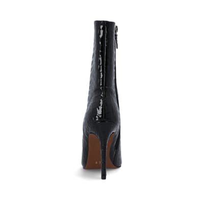 Black Patent croc embossed heeled Boots
