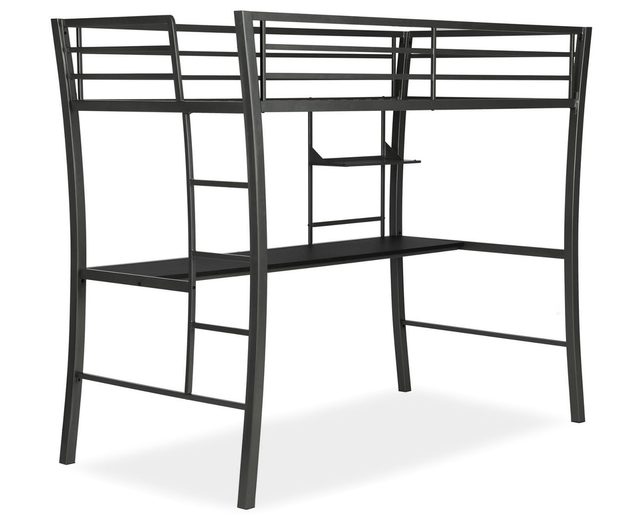 Little Seeds Birka Gray Metal Twin Loft Bed with Desk Shelves