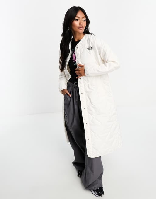 The North Face Ampato long quilted liner jacket in cream Exclusive at ASOS