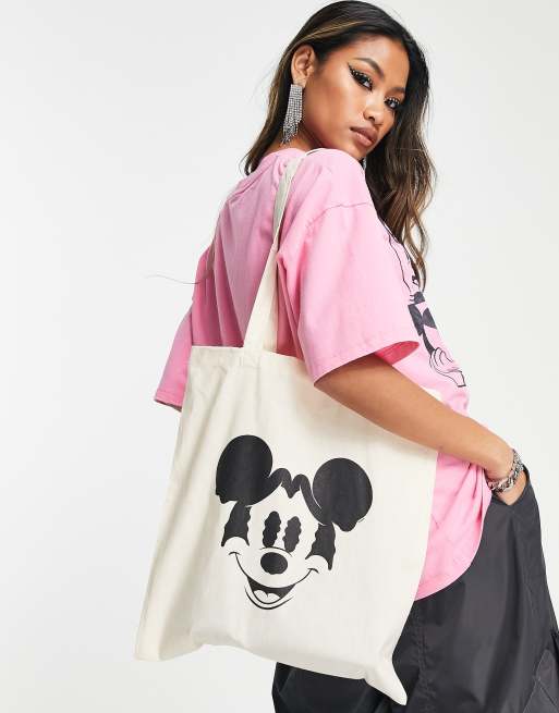 O bag shop mickey mouse, ASOS DESIGN Punk Mickey license graphic shopper tote bag in natural shop