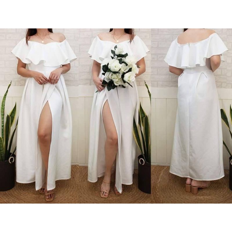 Claudette Formal white dress civil wedding Binyah Ninang Mother