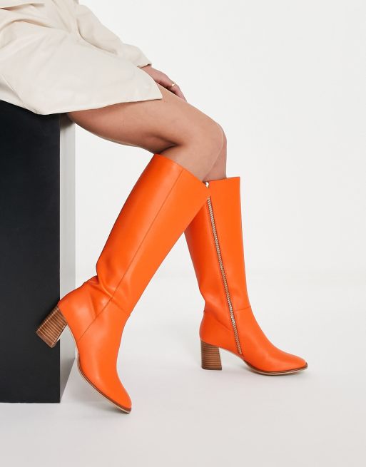 Nora Pointed Toe Zip Fastening Knee High Stiletto Heel Long Boots in Orange