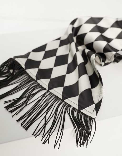 NA KD x Annijor long scarf in diamond black and white check ASOS