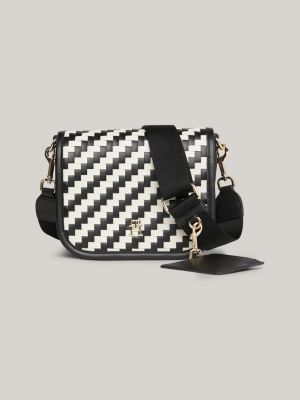 Black and white tommy shop hilfiger purse, TOMMY HILFIGER MONOGRAM CROSSBODY MESSENGER BAG PURSE Black White Gold Hardware shop