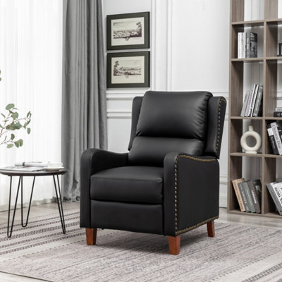 Recliner Upholstered Armchair PU Leather Padded Comfy Sofa Lounge Chair Push Back Recliner with Rivet Decoration Black