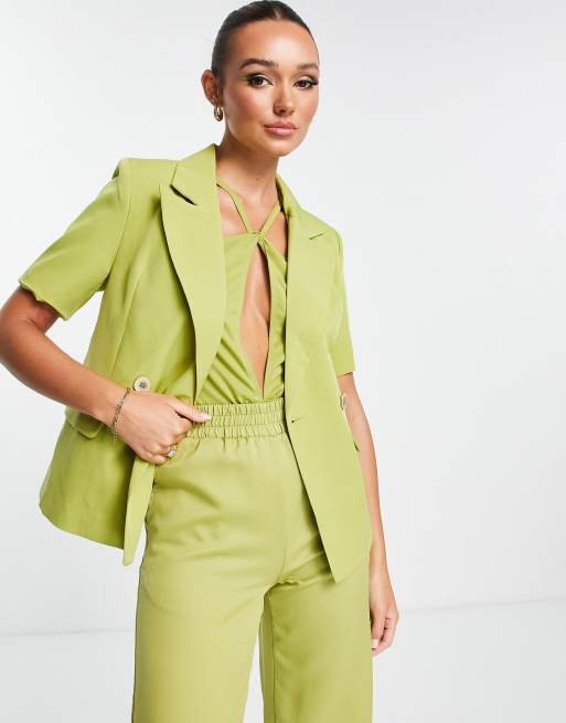 Extro Vert Blazer met korte mouwen in olijfgroen deel van co ord set