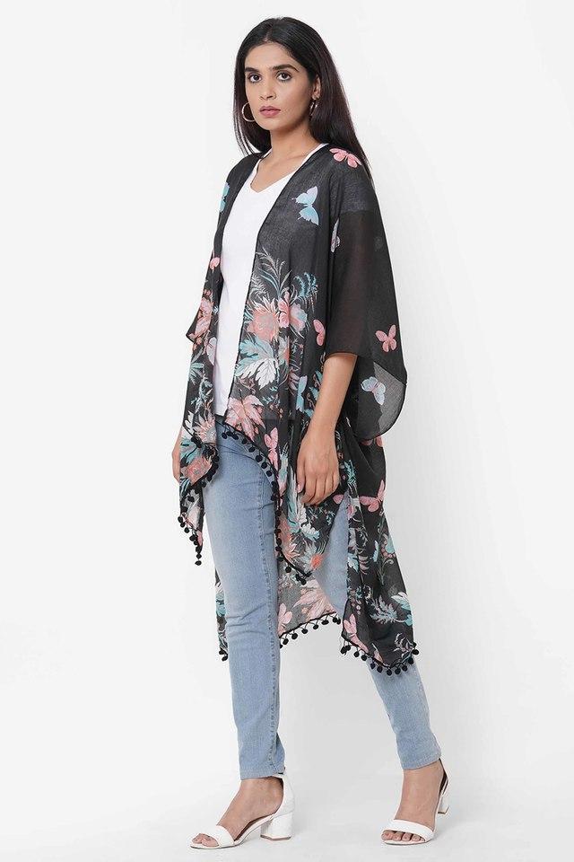 Buy online Black Polyester Shrug from capes shrugs for Women by