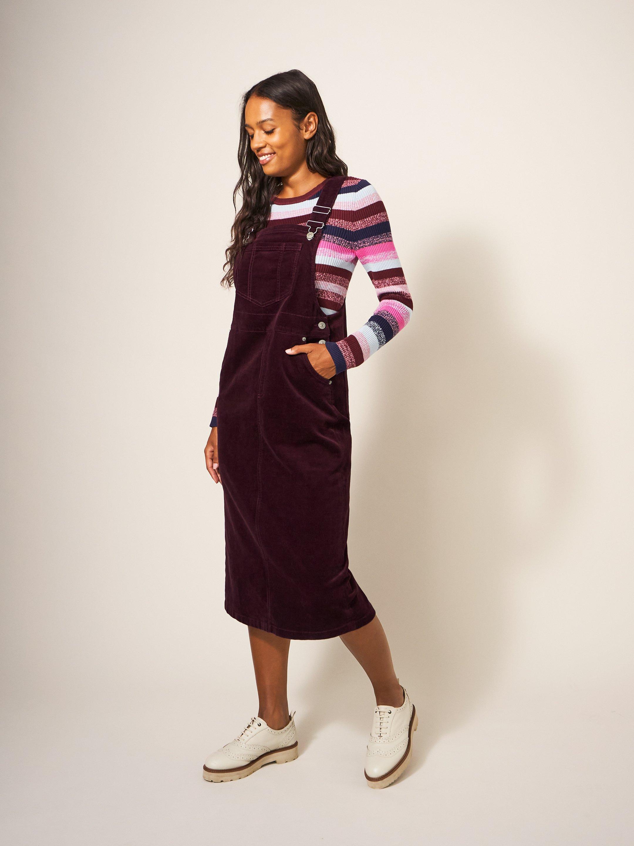 Purple corduroy shop pinafore dress, Run Fly 70 s Floral Corduroy Midi Pinafore Dress Purple Green shop