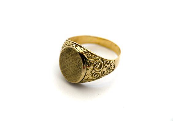 Anello antico da uomo in oro con incisione fine 800 Antichit