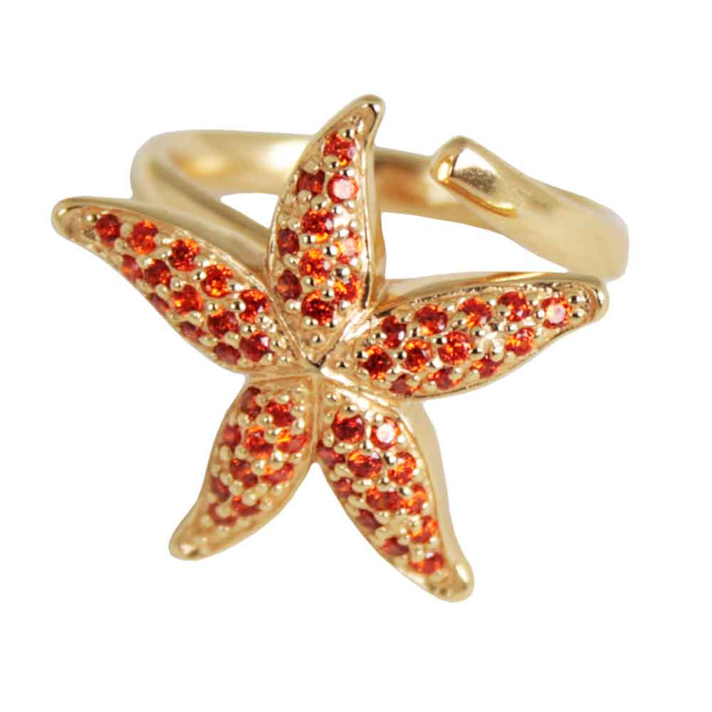 Anello shop stella marina, Anello design stella marina in argento e pav di zirconi orange shop
