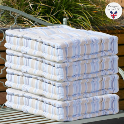 Set of 4 Blue Striped Outdoor Garden Chair Box Seat Pad Cushions
