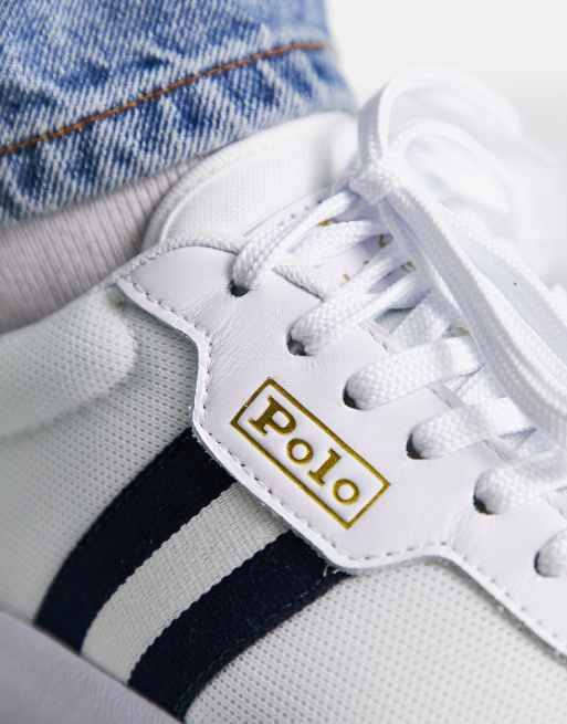 Polo Ralph Lauren leather court vulc sneakers in white with green