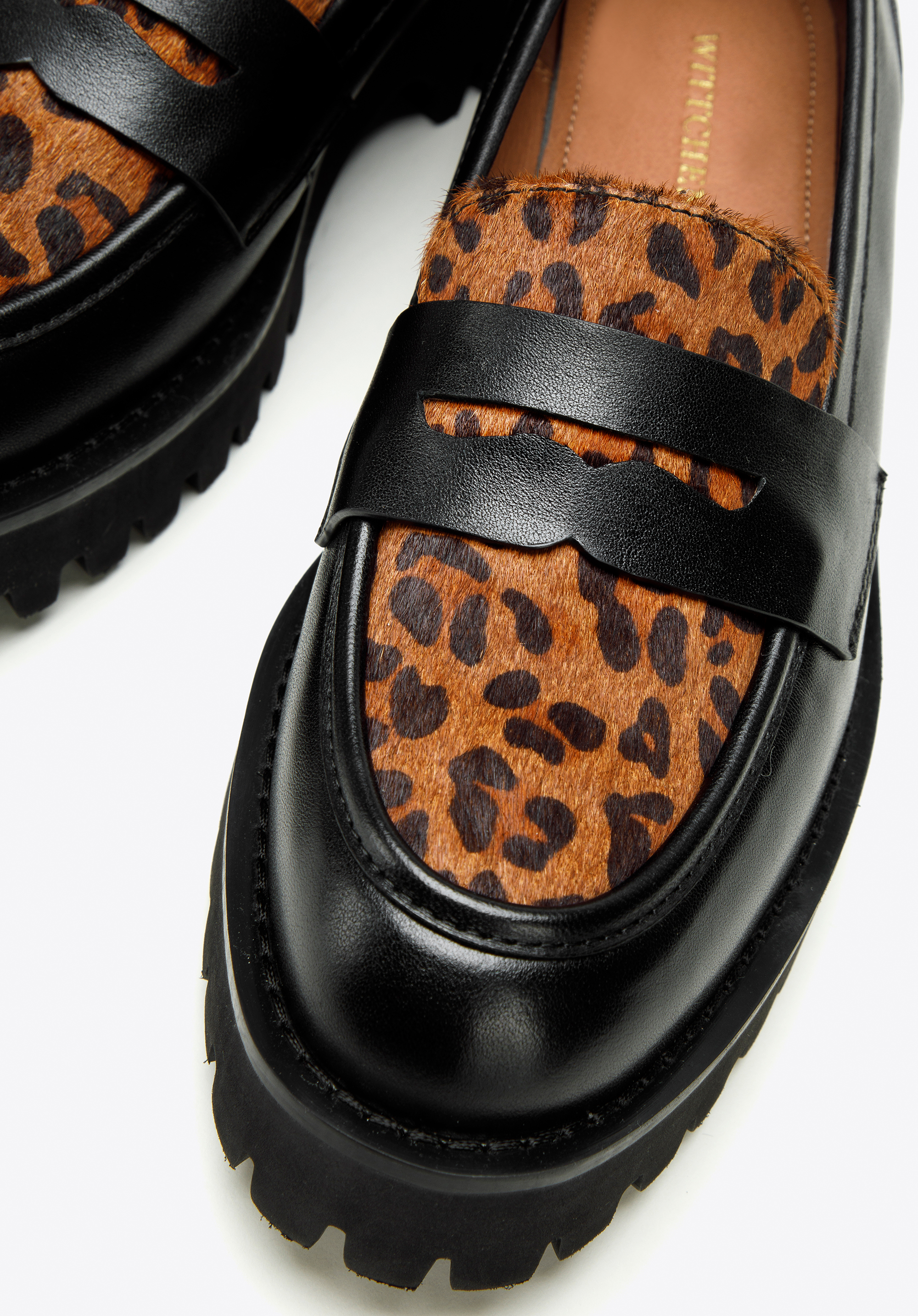 Animal print shop leather loafers, Leopard Print Women s Leather Loafers Foldable Clapham shop