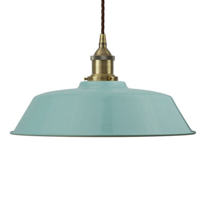 Duck Egg Blue Chancery Painted Pendant Light Antique Brass Lamp