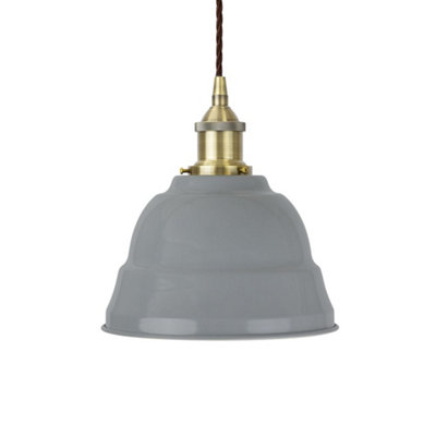 French Grey Lincoln Painted Pendant Light Antique Brass Lamp