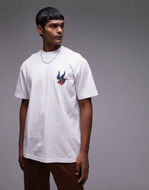 Topman T shirt oversize bianca con ricamo di rondone stile