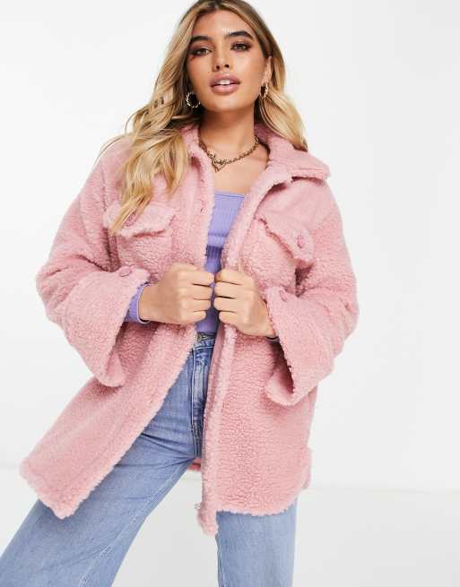 Rose pink shop teddy coat, Petite Longline Teddy Coat shop