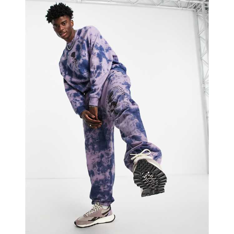 ASOS DESIGN co ord oversized joggers in purple tie dye with rose
