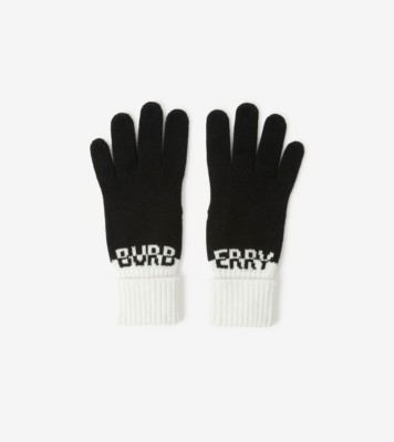 Logo Intarsia Two tone Cashmere Gloves in Black white Burberry