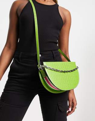 River Island Croc Saddle Bag With Chain And Pink Piping Detail In